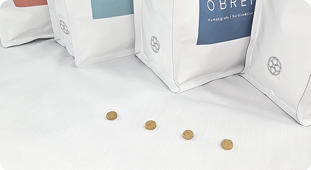 「OBREMO」は無添加で作られているフードで、オイルコーティングも施されていません。人工的な香りや保存料などを使っておらず、長く安心して愛犬に食べてもらえます。仕入れにも厳しい基準を設けており、人用として販売している「ヒューマングレード」のものだけに限定しているのが大きな特徴です。